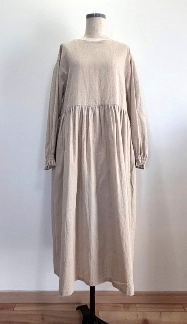 【即納】コットンリネン 生成り キナリ 割烹着ワンピース