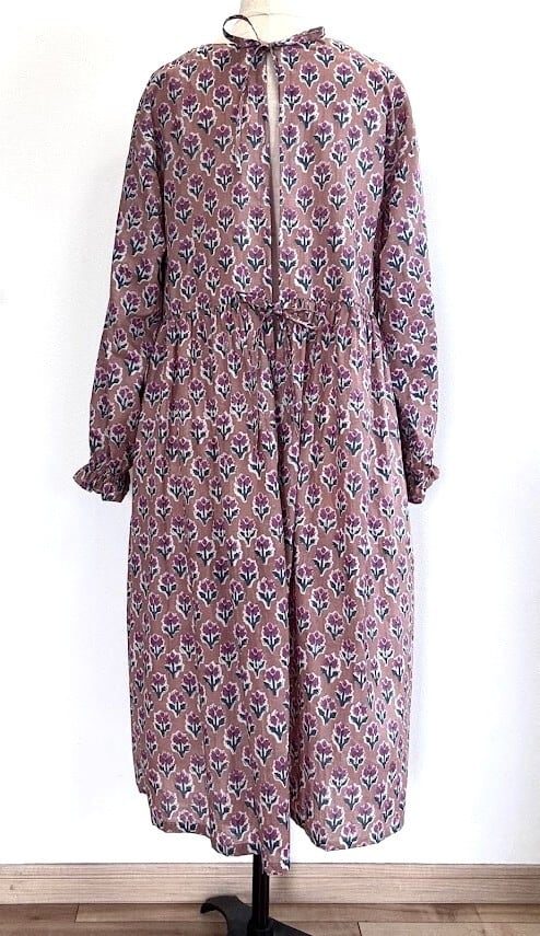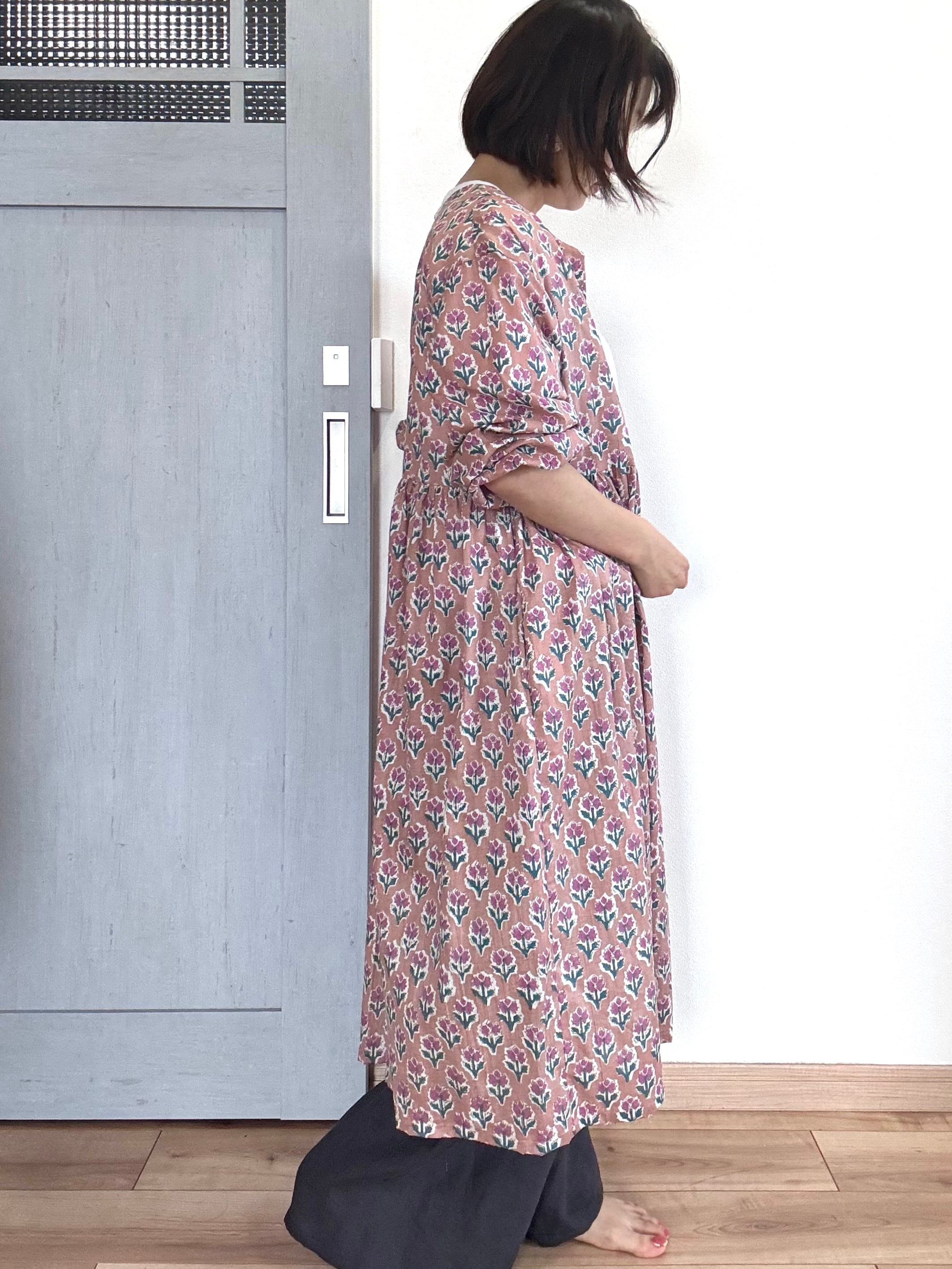 インドのブロックプリント生地で作った心踊る割烹着ワンピース。
