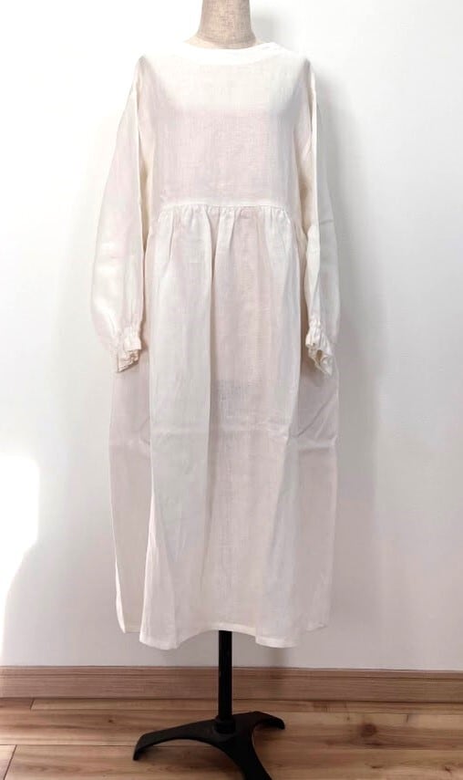 【即納】割烹着ワンピース Mサイズ 上質リネン 100% ナチュラルカラー