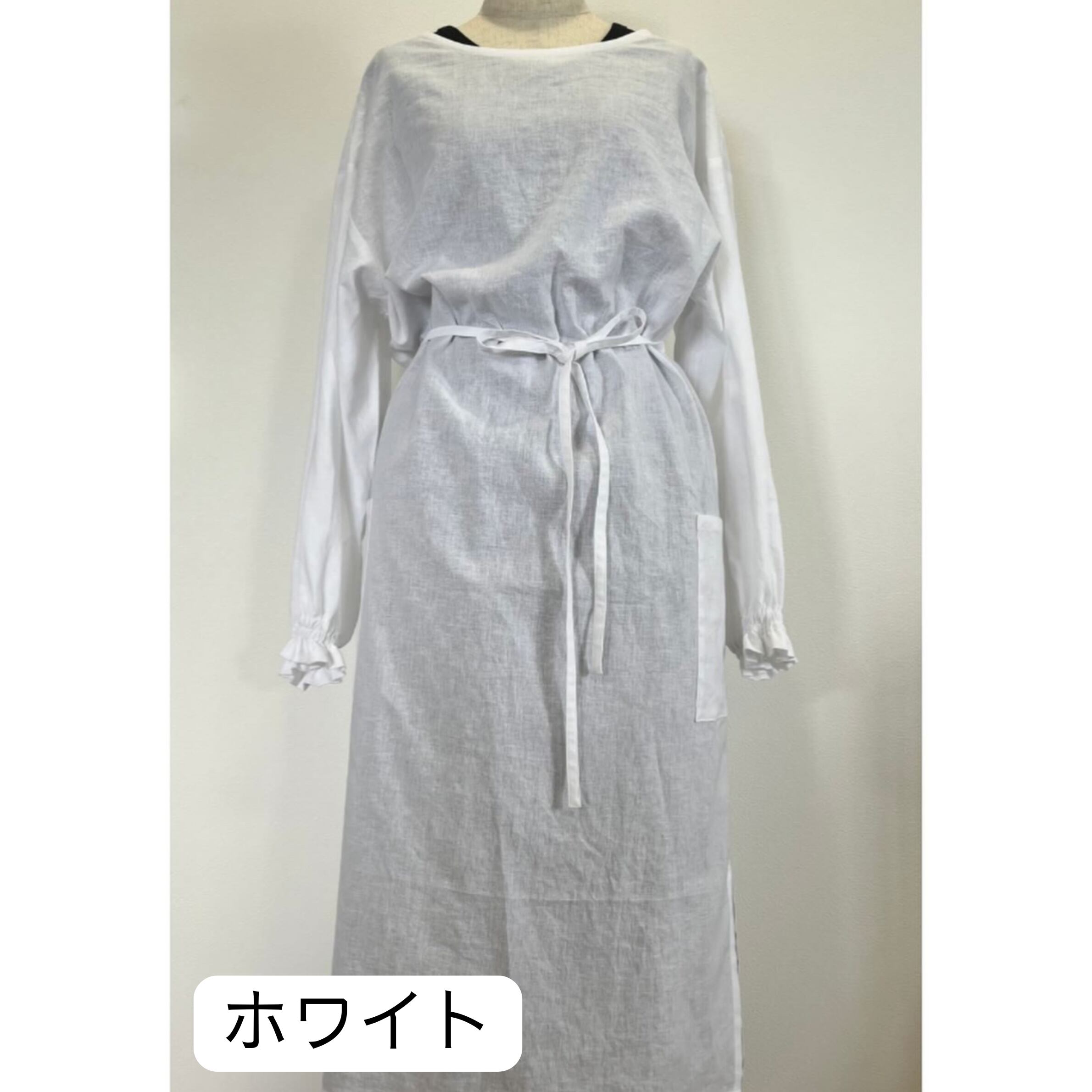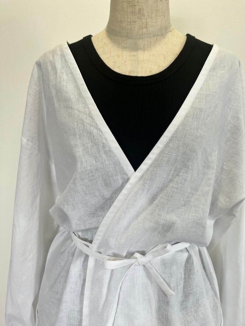 コットンリネン(綿麻)生地の前結び割烹着