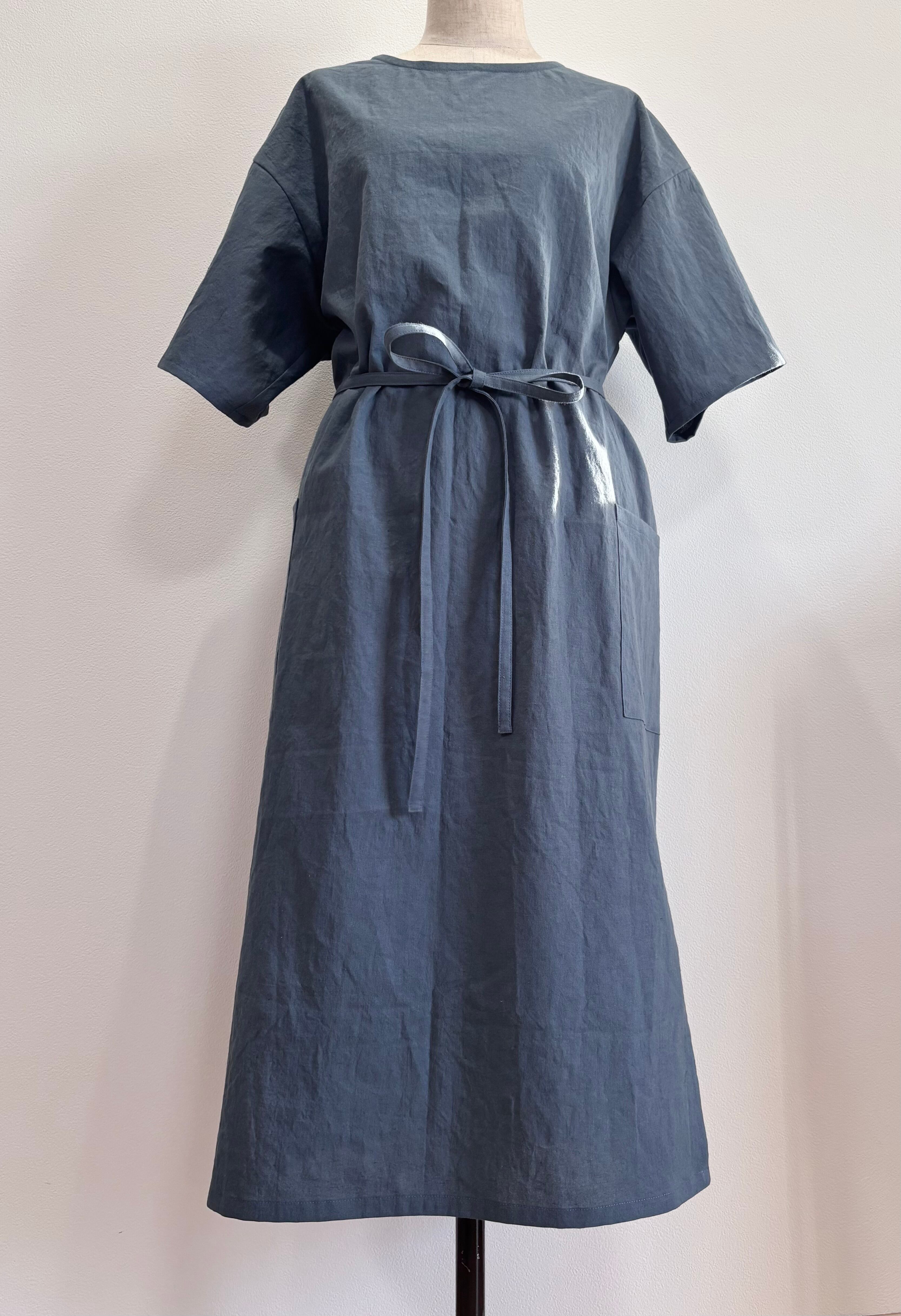 【受注製作・コットンリネン】半袖前結び割烹着 綿麻混合