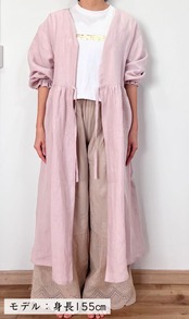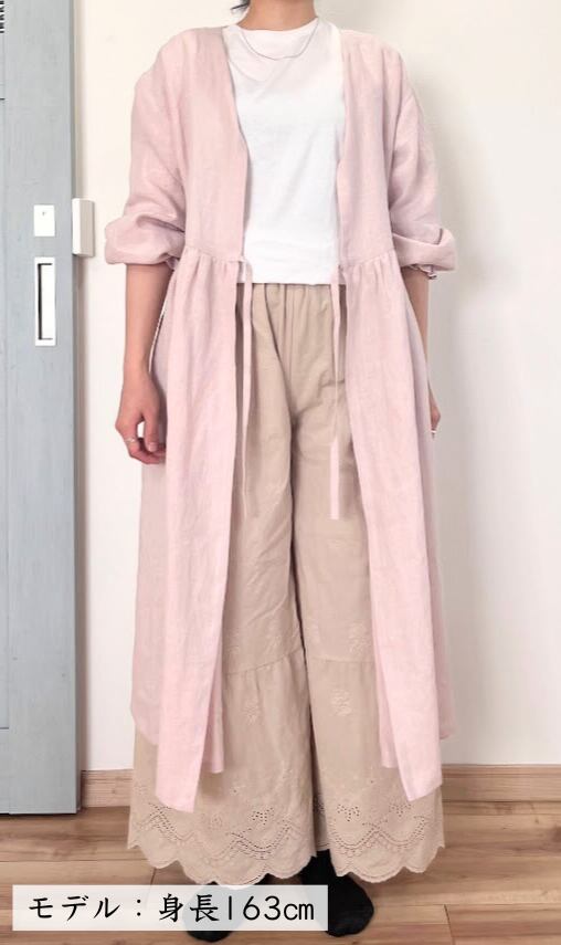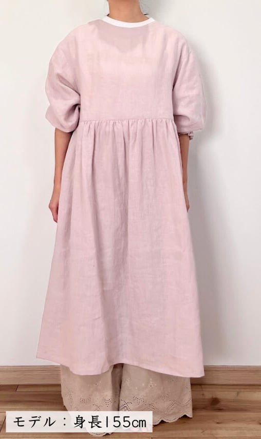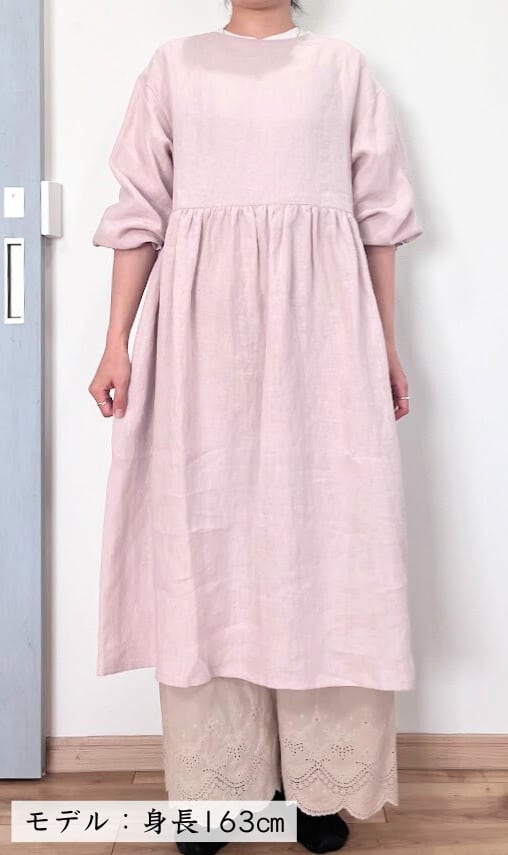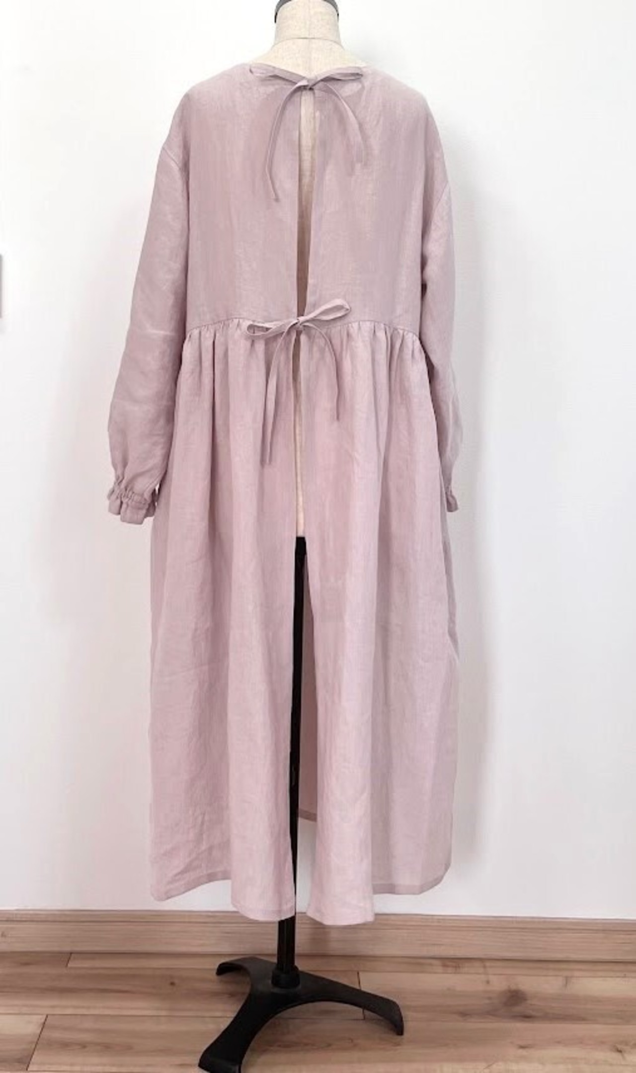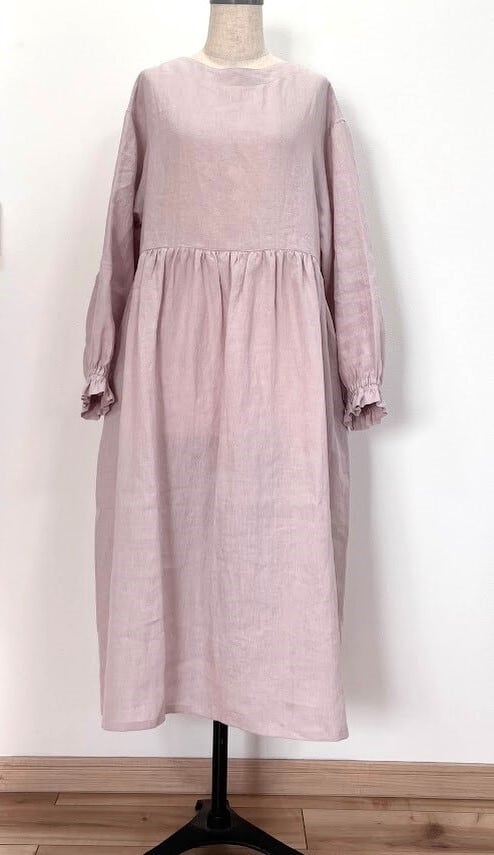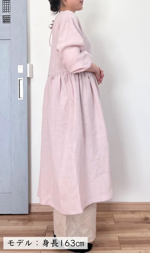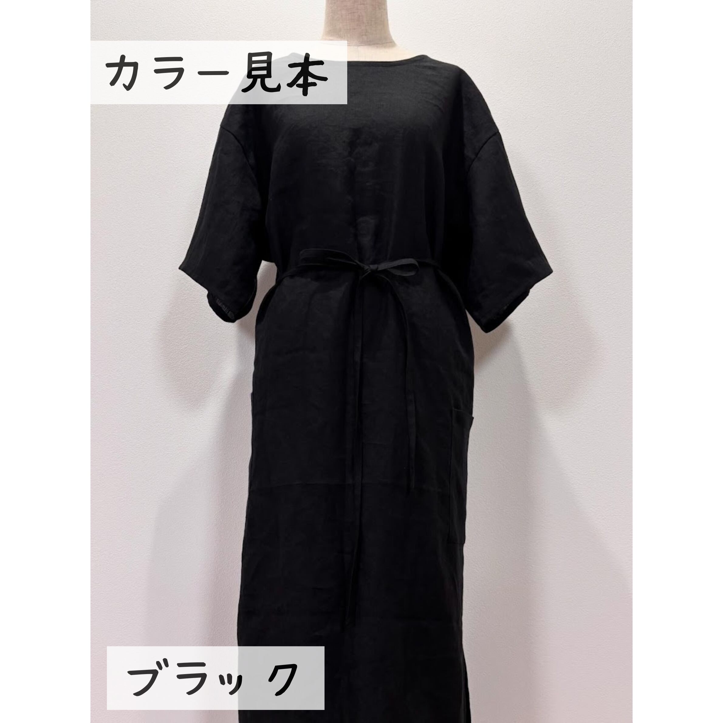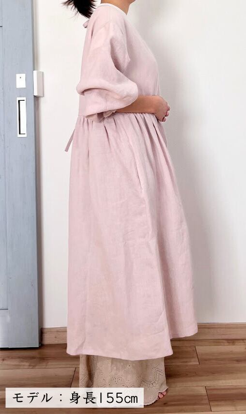 【受注製作◆新色リネン】割烹着ワンピース M・L 上質リネン100% ギャザー