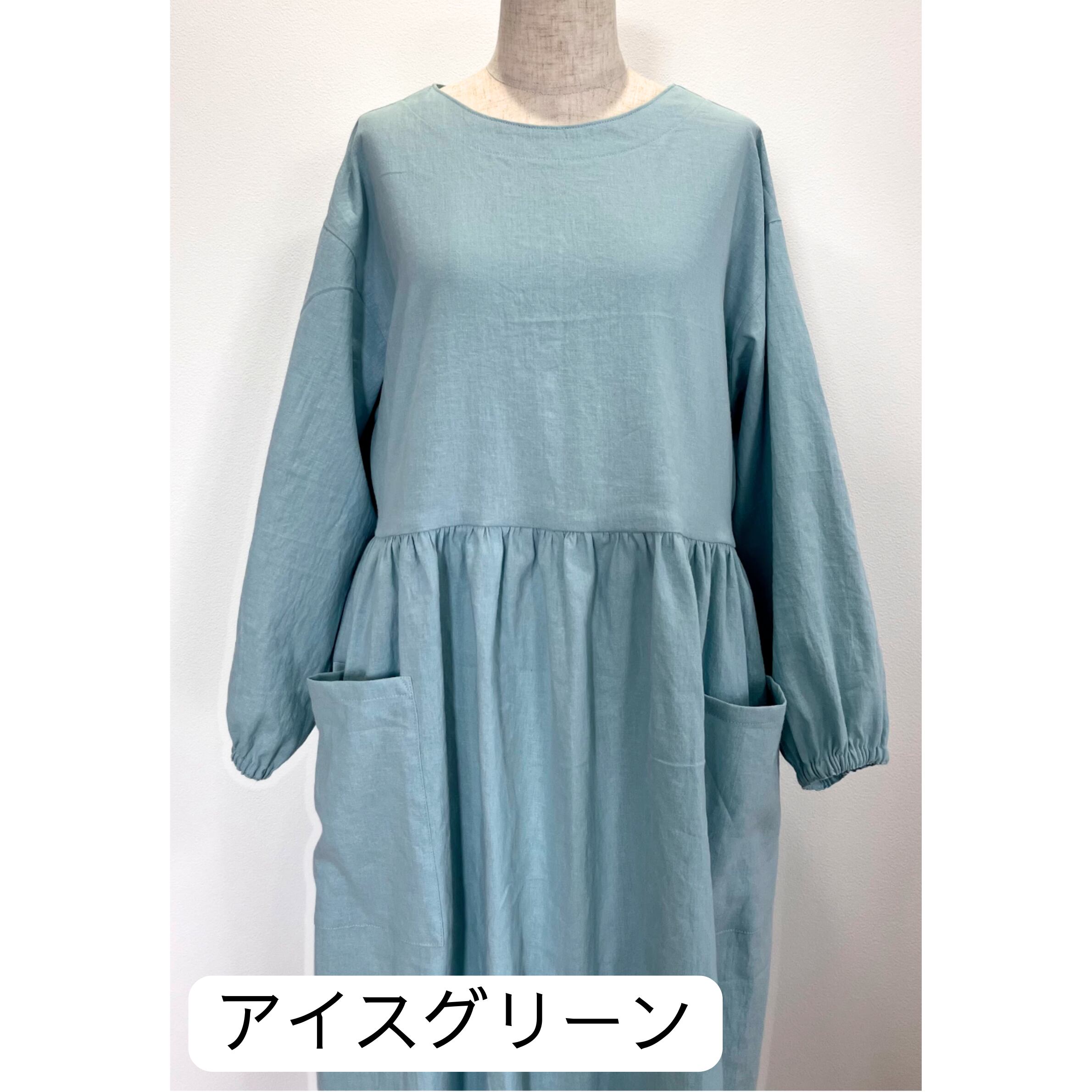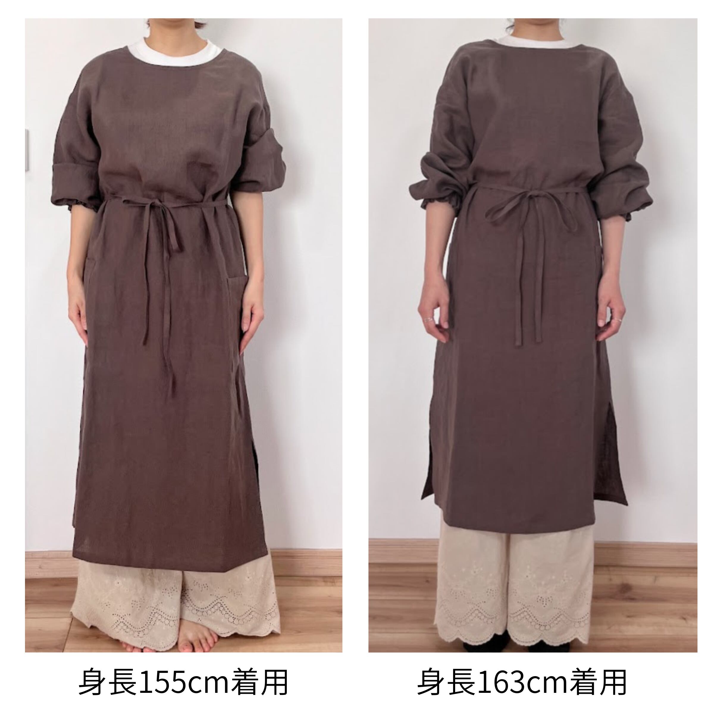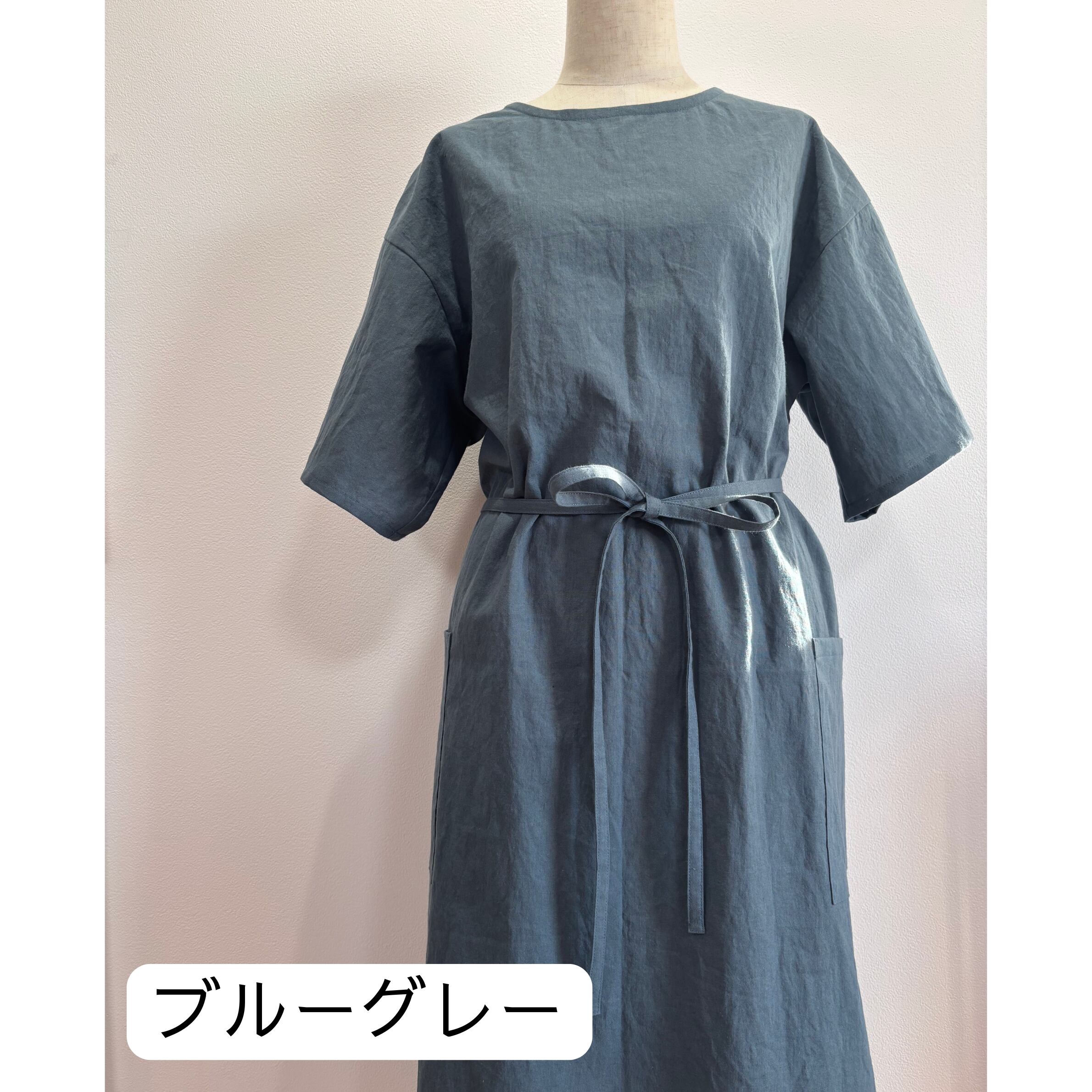 【受注製作・コットンリネン】前結び割烹着 綿麻混合