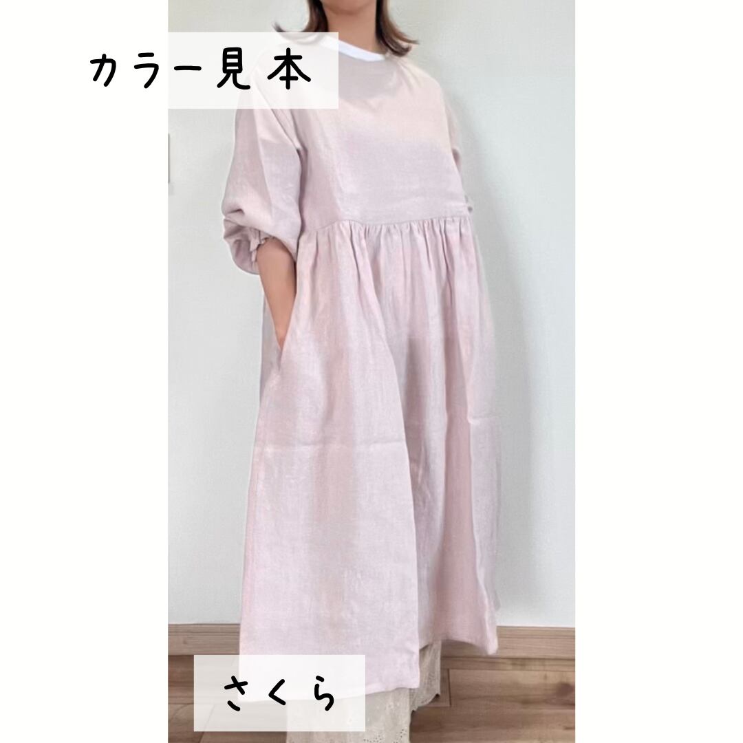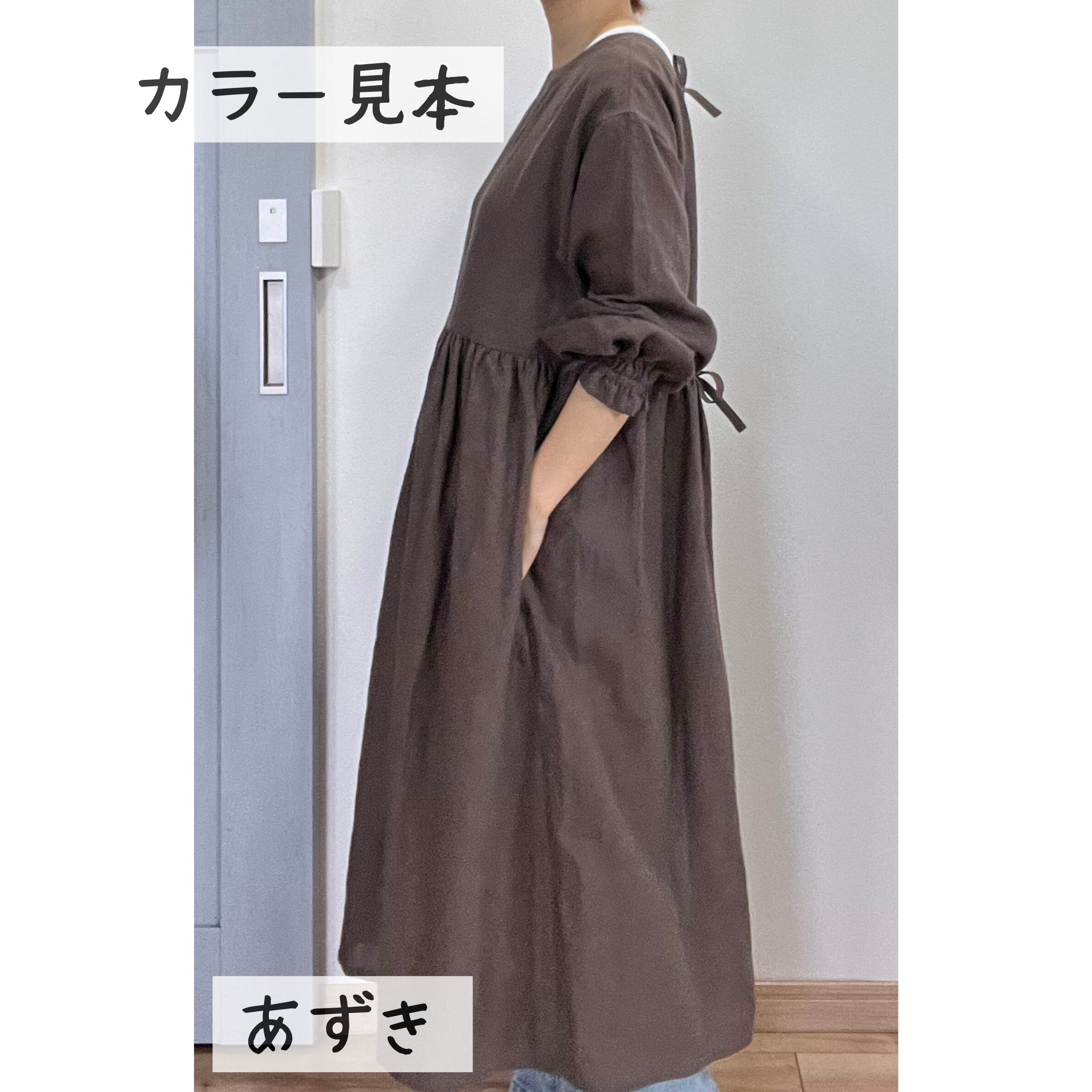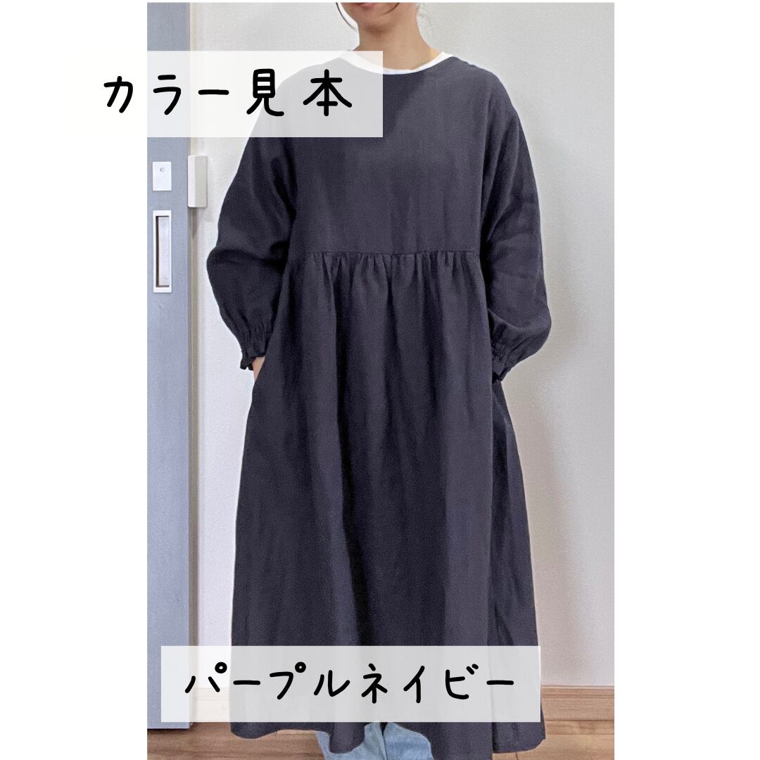 【受注製作◆リネン】割烹着ワンピース M・L 上質リネン100% ギャザー