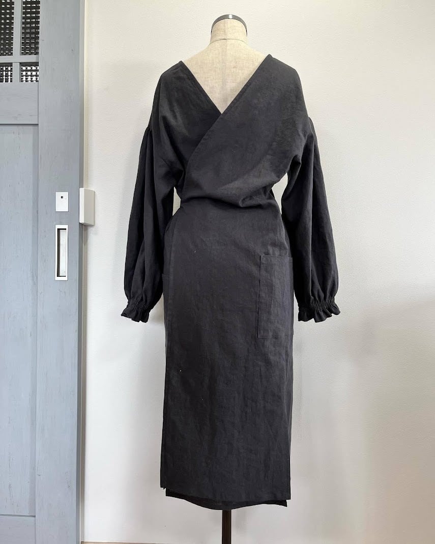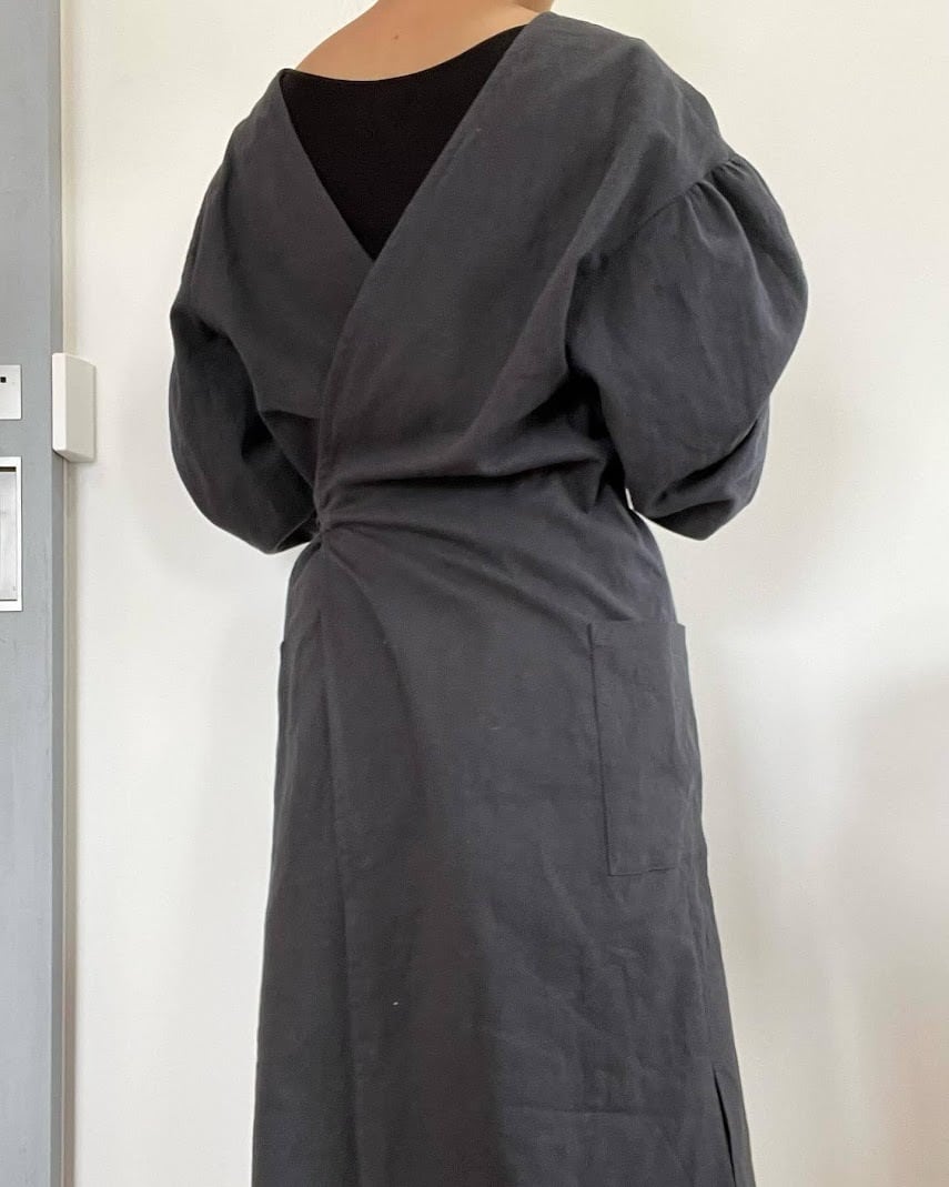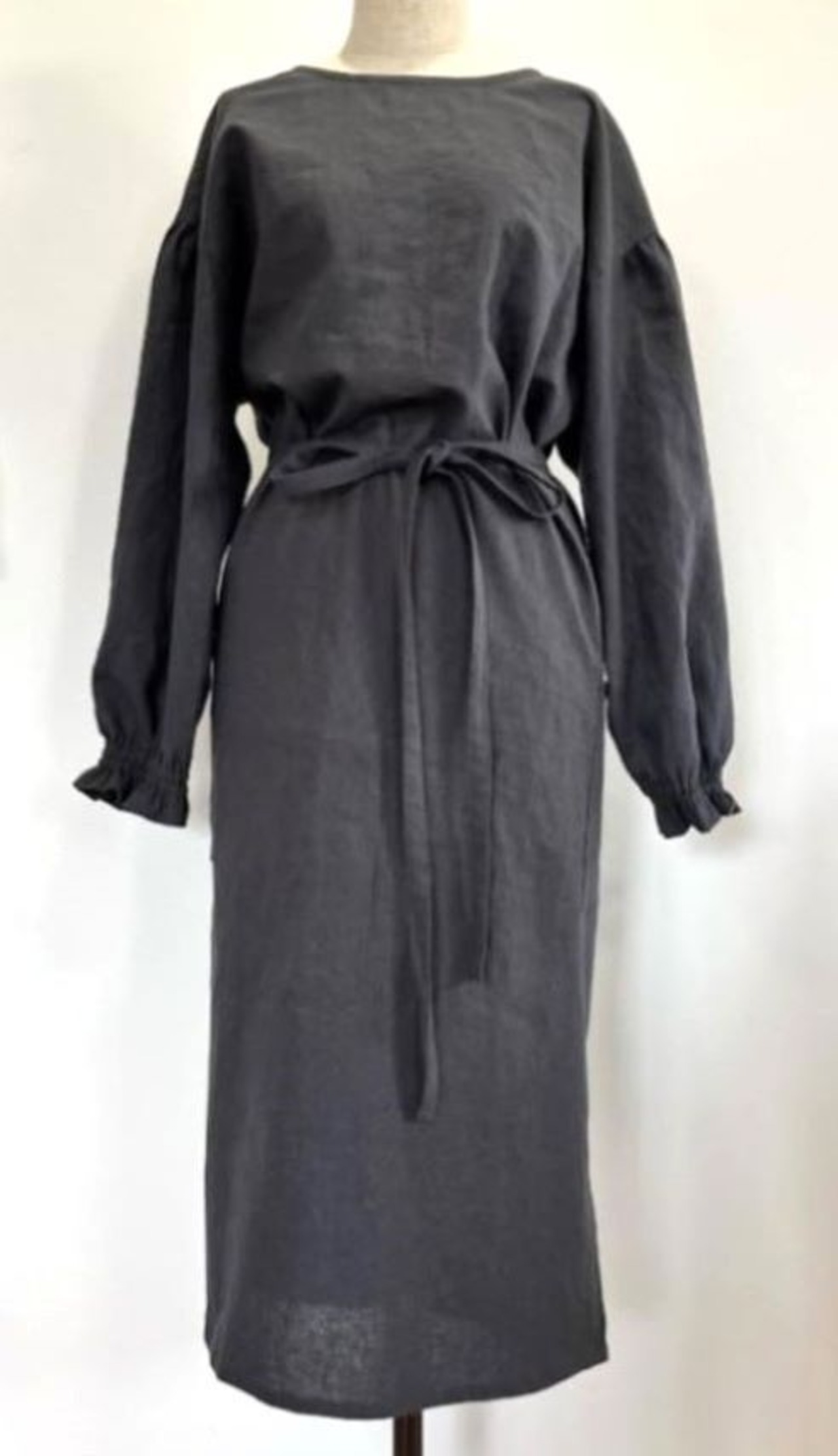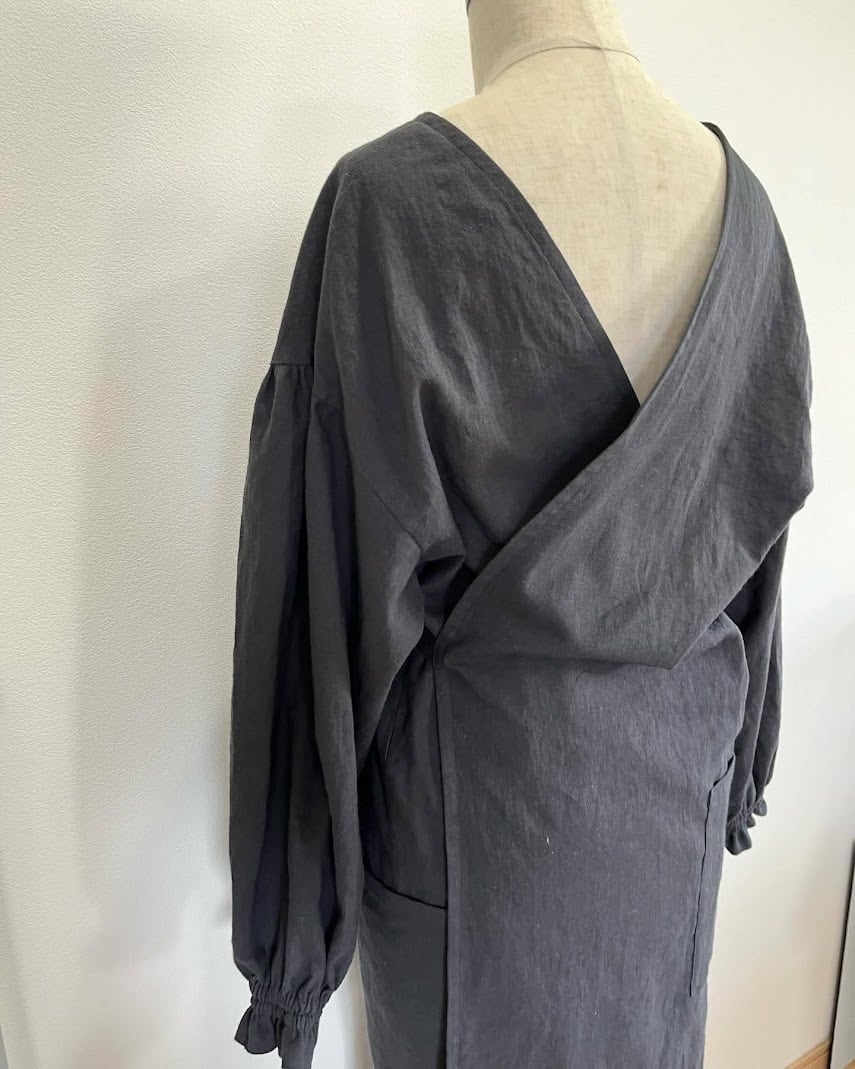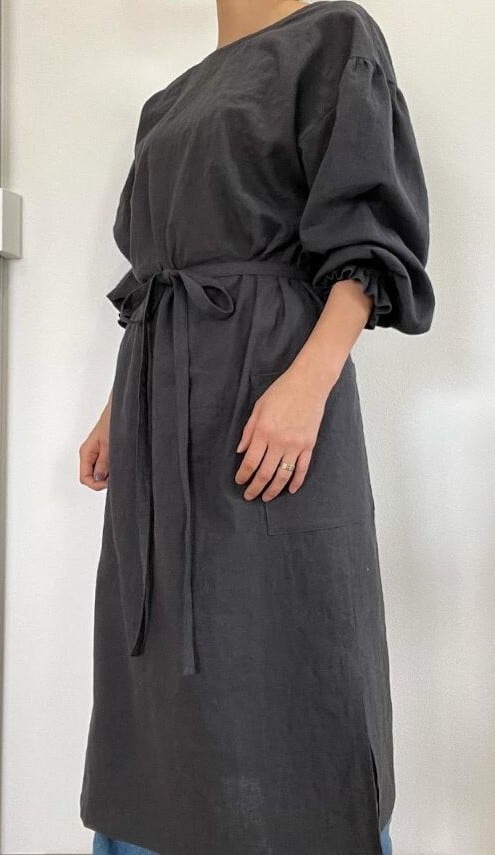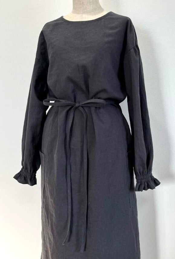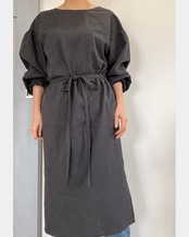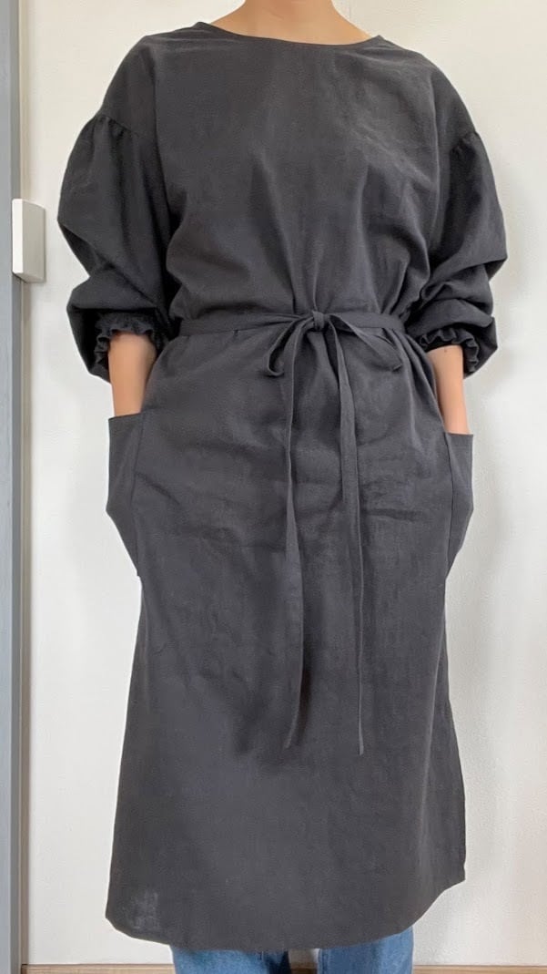 【受注製作・コットンリネン】フワッと袖の前結び割烹着 コットンリネン(綿麻混合)
