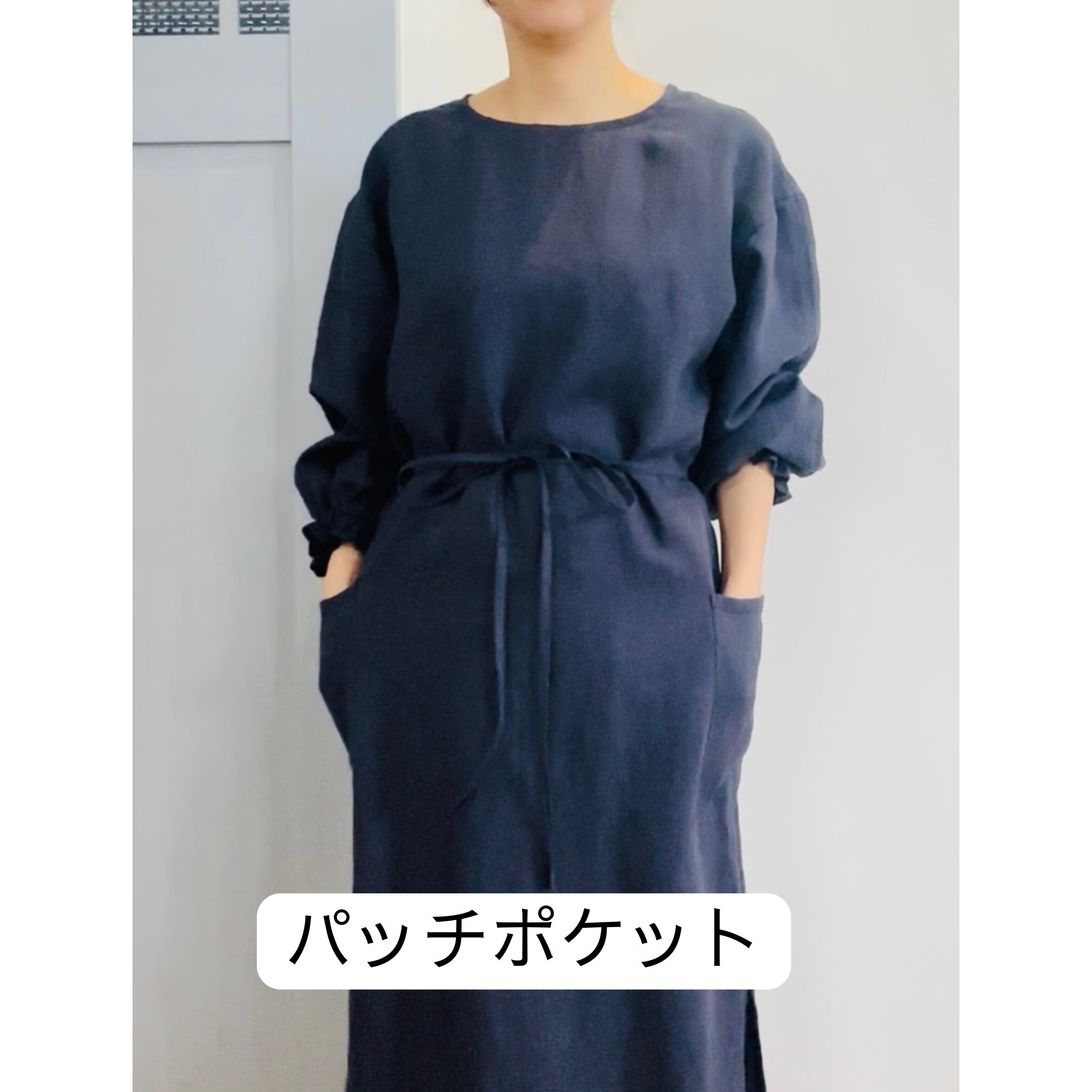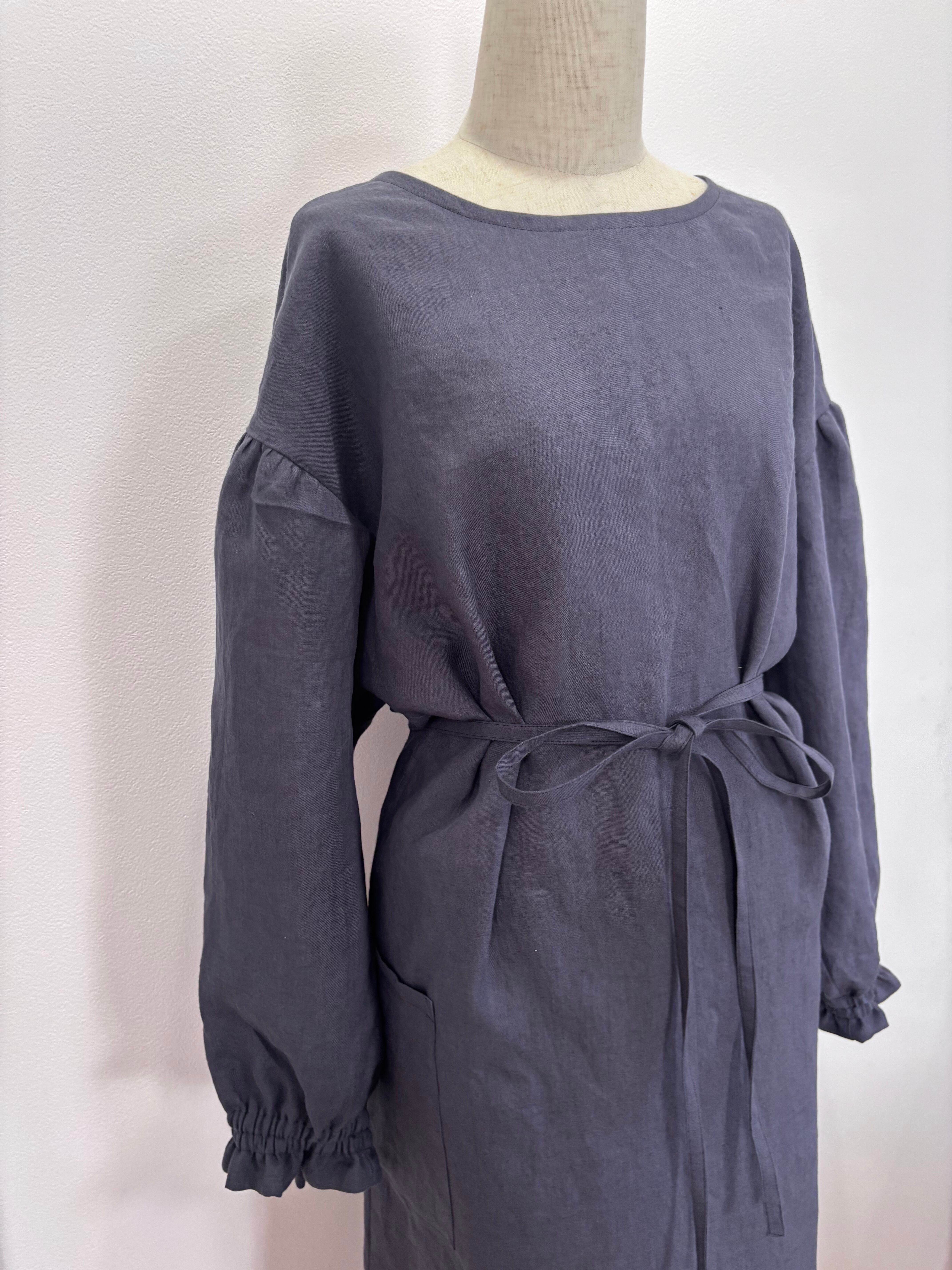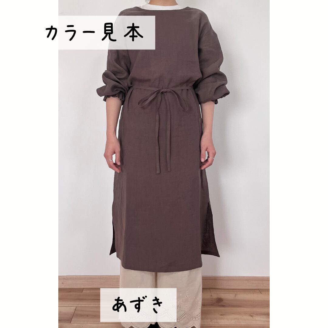 上質リネンで作るフワッと袖の前結び割烹着