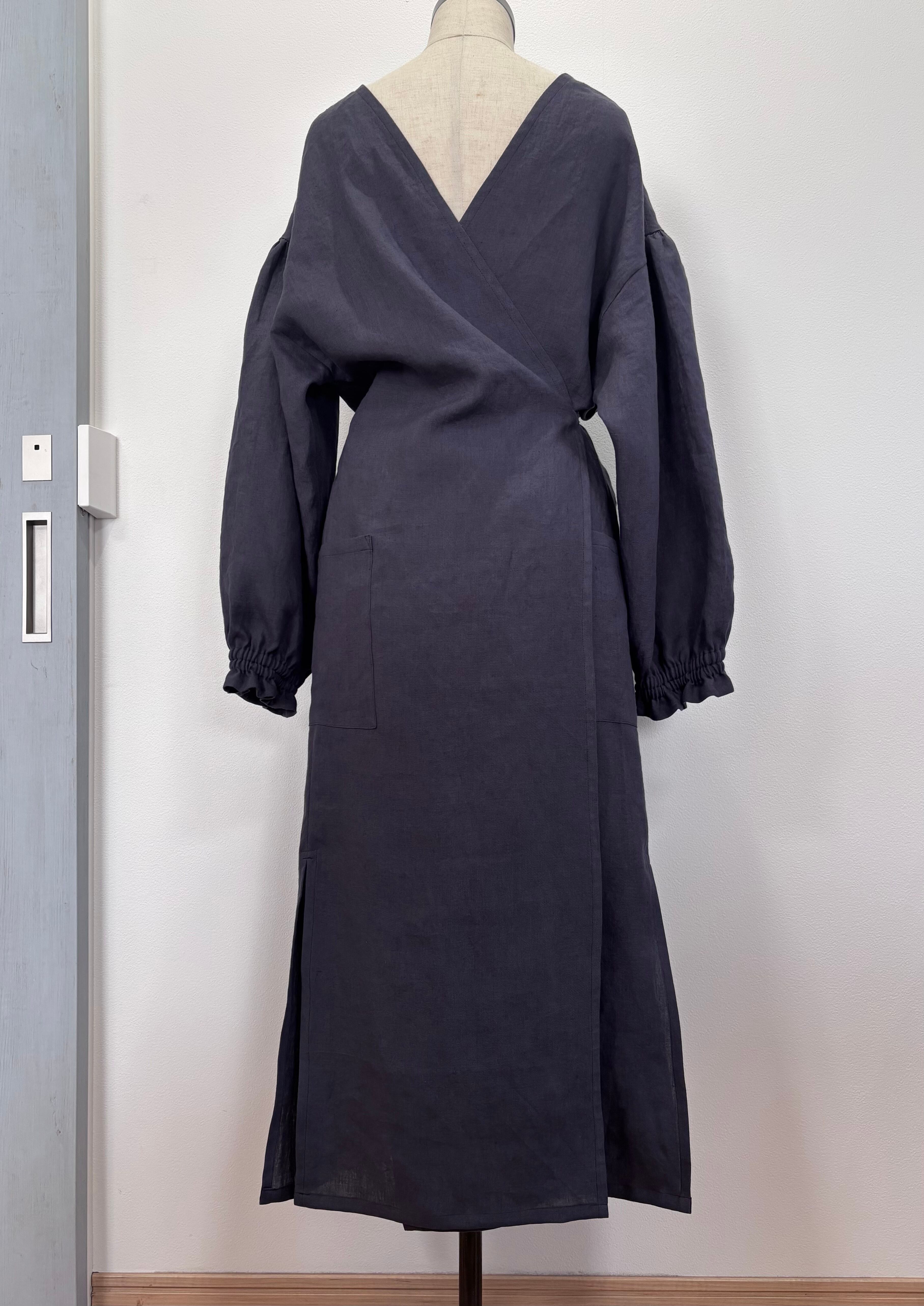 前後を逆に着て、カシュクールワンピースのようにも